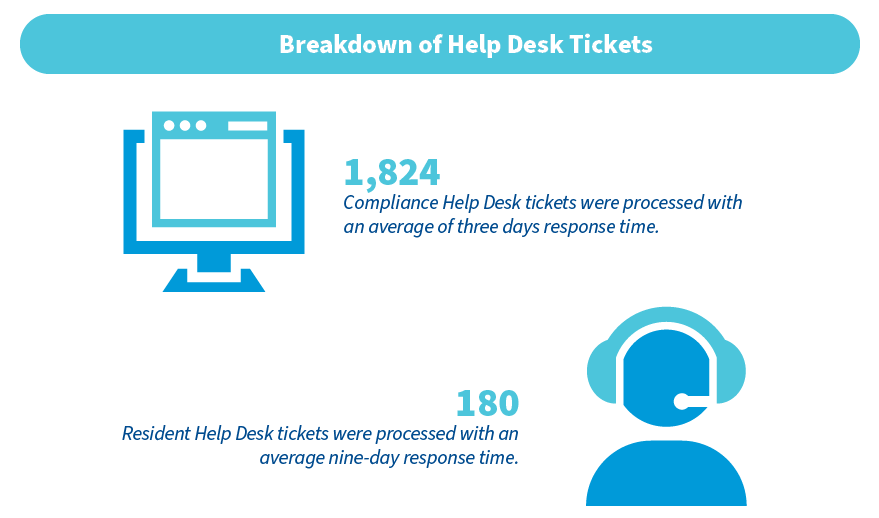 While the Compliance team has its scheduled reviews of OHFA-funded properties, it also understands that issues may arise at a housing development at any time and has a Resident Help Desk and hotline.