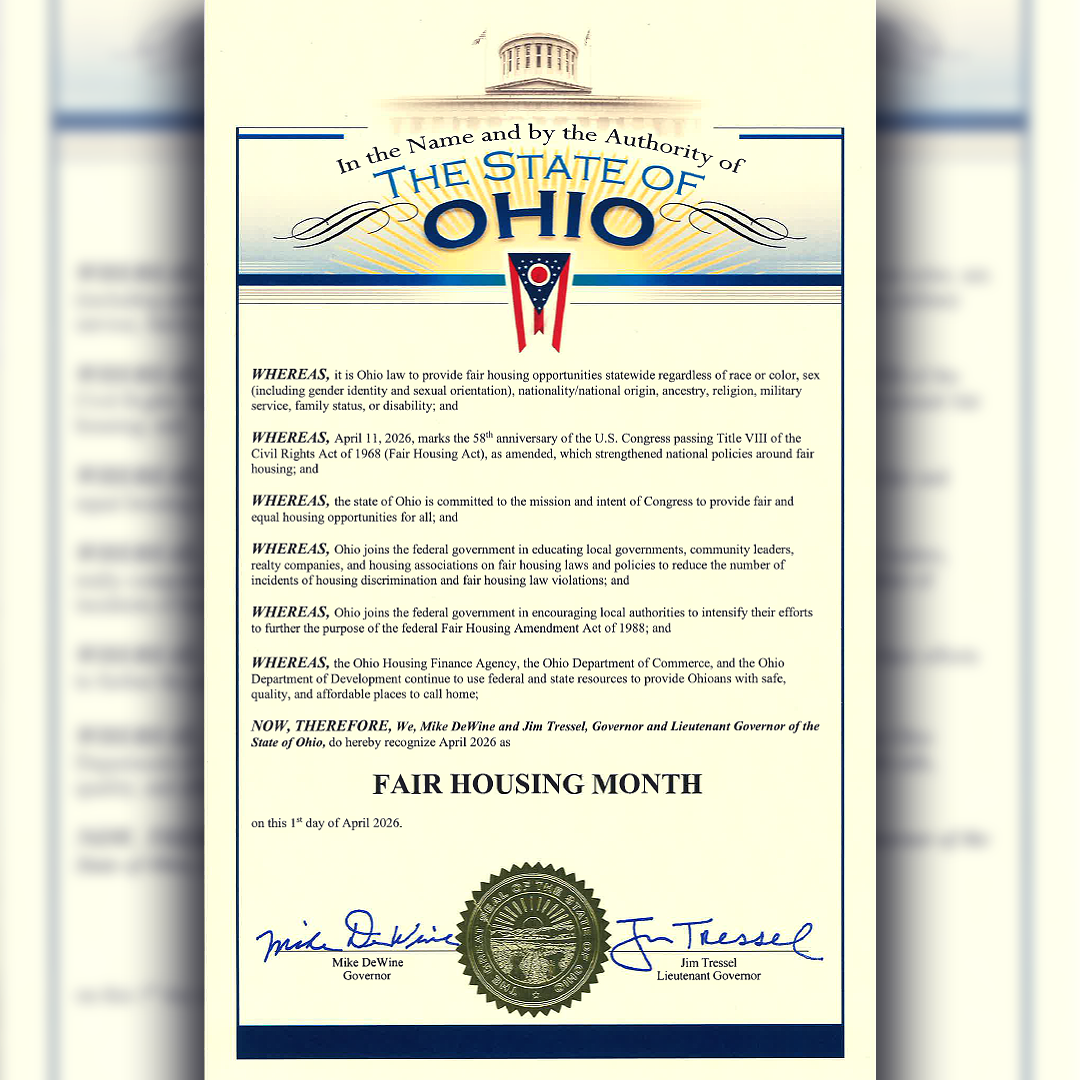 As we recognize Fair Housing Month, the Ohio Housing Finance Agency is committed to furthering its mission as the state's leader in affordable housing. We thank the OHFA Board, our industry partners, and our staff for their continued support and service.
